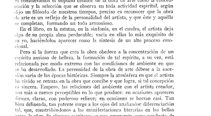Aniversarios,Ateneo de la juventud,Cátedras,México,Siglo XX El pensador mexicano y su tiempo. Carlos González Peña. Agosto, 1910 Galería 1 septiembre, 2014 Cátedra Alfonso Reyes en Cuernavaca Deja un comentario Si consideramos el impulso creador de la obra de arte como la concentración y la selección que se observa en toda actividad espiritual, según dijo un filósofo de nuestros tiempos, preciso es reconocer que la obra de arte es un reflejo de la personalidad del artista, y que éste y aquélla se completan, formando un todo armonioso. En el libro, en la estatua, en la sinfonía, en el cuadro, el artista deja algo de su propia alma perdurable; vacía en ellos lo más exquisito de su yo, haciéndolos aparecer como la síntesis de un alto proceso emocional. Carlos González Peña, agosto de 1910. Comparte esto: Haz clic para compartir en Facebook (Se abre en una ventana nueva) Facebook Haz clic para compartir en X (Se abre en una ventana nueva) X Haz clic para enviar un enlace por correo electrónico a un amigo (Se abre en una ventana nueva) Correo electrónico Haz clic para compartir en WhatsApp (Se abre en una ventana nueva) WhatsApp Haz clic para imprimir (Se abre en una ventana nueva) Imprimir Más Haz clic para compartir en LinkedIn (Se abre en una ventana nueva) LinkedIn Haz clic para compartir en Tumblr (Se abre en una ventana nueva) Tumblr Haz clic para compartir en Reddit (Se abre en una ventana nueva) Reddit Haz clic para compartir en Pinterest (Se abre en una ventana nueva) Pinterest Haz clic para compartir en Pocket (Se abre en una ventana nueva) Pocket Relacionado