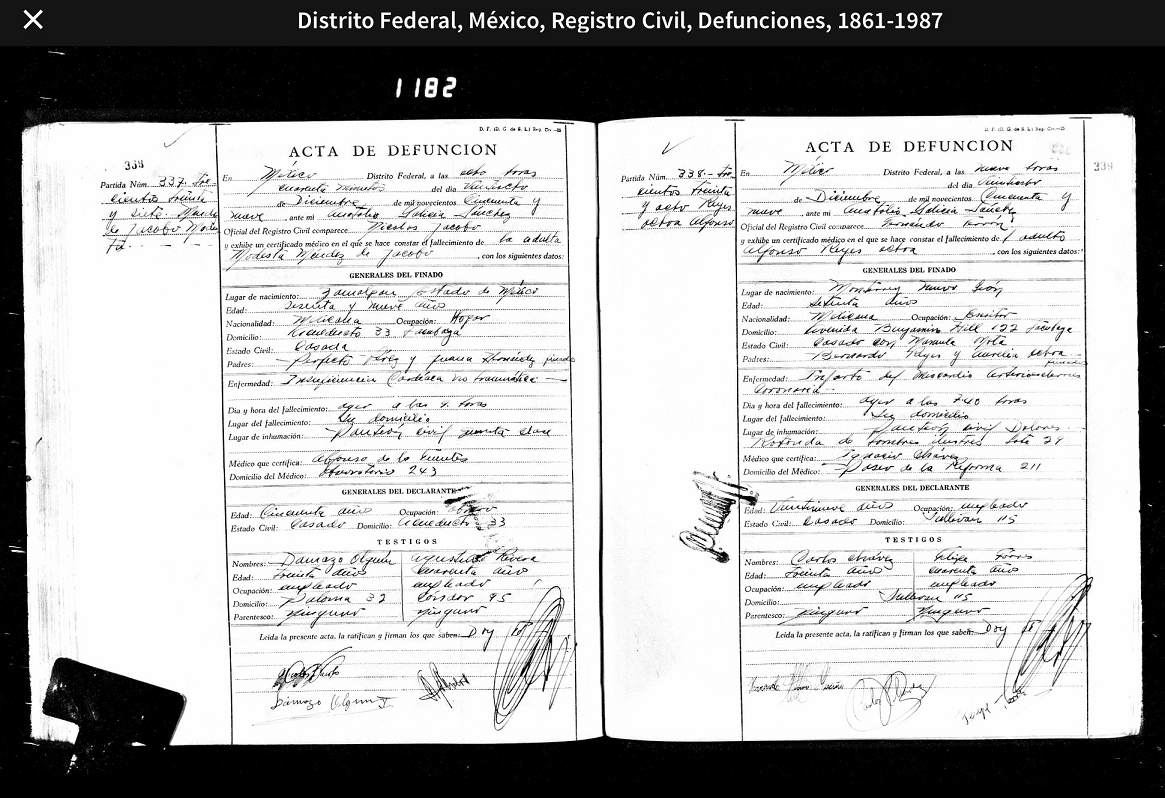 Cátedra Alfonso Reyes en Cuernavaca,Genealogía Alfonso Reyes,Generación 1885,México,Siglo XX Acta de defunción de Alfonso Reyes (Ciudad de México, 27 de diciembre de 1959) 20 febrero, 2017 Cátedra Alfonso Reyes en Cuernavaca Deja un comentario Acta de defunción de Alfonso Reyes Ochoa (Ciudad de México, México, 27 de diciembre de 1959). Causa de la muerte: infarto del miocardio, arterioesclerósis coronaria. Comparte esto: Haz clic para compartir en Facebook (Se abre en una ventana nueva) Facebook Haz clic para compartir en X (Se abre en una ventana nueva) X Haz clic para enviar un enlace por correo electrónico a un amigo (Se abre en una ventana nueva) Correo electrónico Haz clic para compartir en WhatsApp (Se abre en una ventana nueva) WhatsApp Haz clic para imprimir (Se abre en una ventana nueva) Imprimir Más Haz clic para compartir en LinkedIn (Se abre en una ventana nueva) LinkedIn Haz clic para compartir en Tumblr (Se abre en una ventana nueva) Tumblr Haz clic para compartir en Reddit (Se abre en una ventana nueva) Reddit Haz clic para compartir en Pinterest (Se abre en una ventana nueva) Pinterest Haz clic para compartir en Pocket (Se abre en una ventana nueva) Pocket Me gusta Cargando... Relacionado