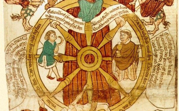 La naturaleza, decían los escolásticos, tiene horror al vacío, y la fórmula se ha quedado en nuestra memoria porque habla a la imaginación y porque responde a la experiencia. La naturaleza, en efecto —según la perciben los sentidos—, es toda ella plenitud y contacto, y así pudo decir el poeta Francis Thompson que no puede arrancarse una flor sin perturbar a una estrella. La naturaleza produce y nutre a sus criaturas siempre por acercamiento y penetración. Y el útil, como lo hemos dicho, también pertenece a este sistema. El obrero necesita y pide que el útil le acomode en la mano. Pero no la rueda. El carretero, el constructor de la rueda, se ingenia, al contrario, para reducir los frotamientos al mínimo; su ideal sería anularlos y lograr que la rueda girara a toda velocidad en el vacío. Aquel señor que pasa en coche forma un cuerpo con el asiento y la carrocería del vehículo. Pero la rueda, motriz del conjunto, no forma cuerpo con nada. Su medio favorable es, en torno al eje, una gota de grasa, gota que no sirve para alimentar sino sólo para emancipar o libertar. La vocación de la rueda es la libertad. Tiene ante sí el infinito, el infinito del número y el infinito mecánico. ¡Qué bien lo entendió el artista griego cuando imaginó a la Fortuna como una mujer sobre una rueda! El anhelo, el sueño de esa mujer es la riqueza, el gozo inacabable solo la rueda puede dárselo. Y nunca la mitología fue mas lejos. Y toda maquina fundada en la rueda eso es lo que quiere, escapar: de aquí la rebelión de las máquinas que hoy estudia la Cibernética, espantada de sus propios engendros.