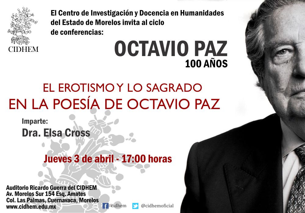 Conferencia: El erotismo y lo sagrado en la poesía de Octavio Paz. 3 de abril de 2014. 17:00 horas.