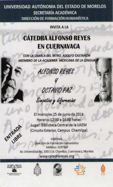 Conferencia magistral: Simpatías y diferencias entre Alfonso Reyes y Octavio Paz . 25 de junio de 2014, 12:00 horas.